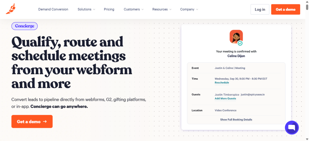 It connects prospects to the right rep and schedules demos in seconds. Chili Piper is a good fit for high-velocity inbound sales teams prioritizing automated appointment scheduling.