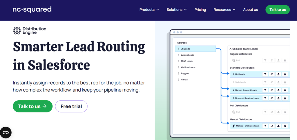 The next contender for the best Salesforce lead routing software is Distribution Engine, owned by NC Squared. It’s a long-standing Salesforce-native routing tool known for reliability and deep configuration options.
