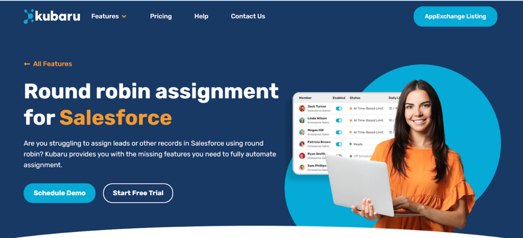 | Kubaru | Large sales, support and/or operations teams using Salesforce | $20/user/month | Fully native Salesforce routing automation with clear visibility and custom logic |