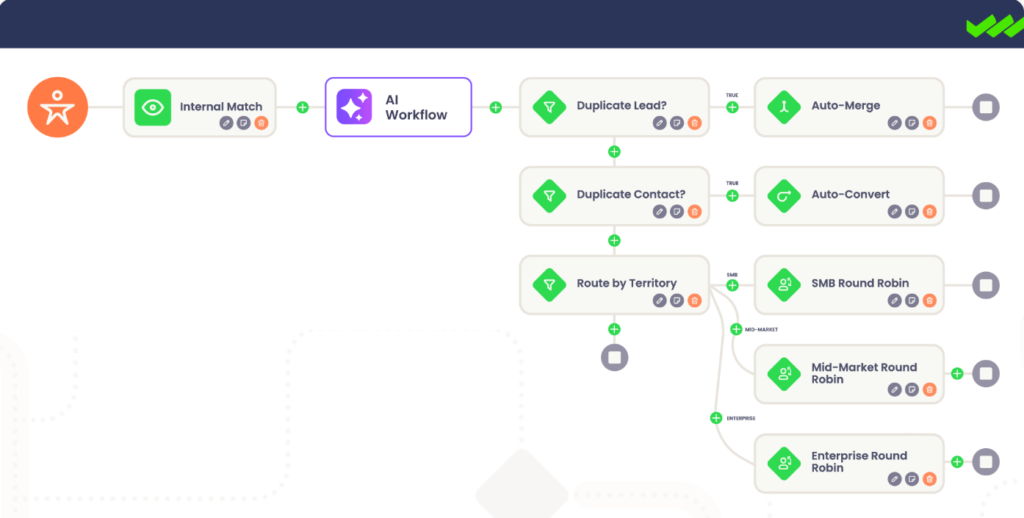 It combines routing with validation, merging, and data hygiene capabilities. The tool works well for businesses wanting a single platform for both routing and clean CRM data.