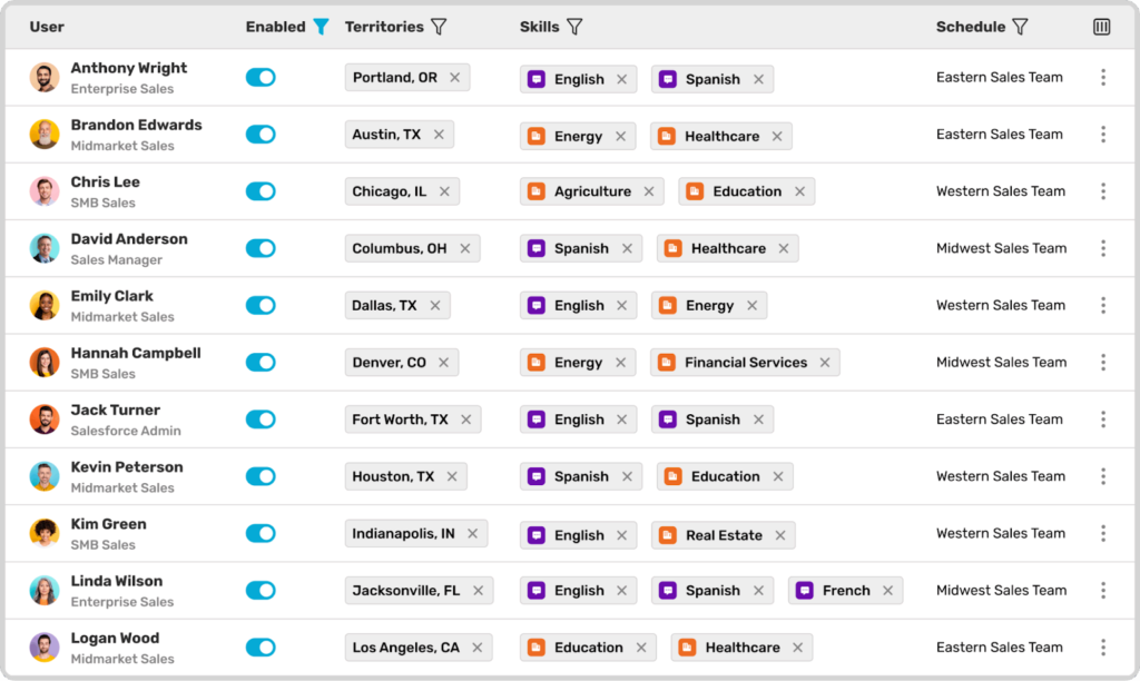 - Territory and Skill-Based Routing – Matches lead characteristics to rep expertise