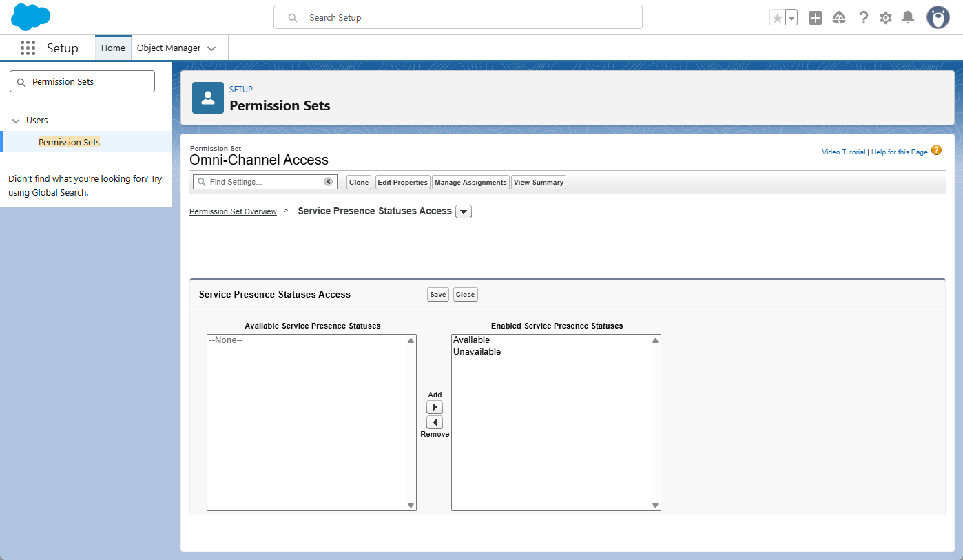 Once your statuses are created, you must grant agents the authority to use them. This is managed through Permission Sets or Profiles, where you define which specific Presence Statuses an agent is allowed to select.