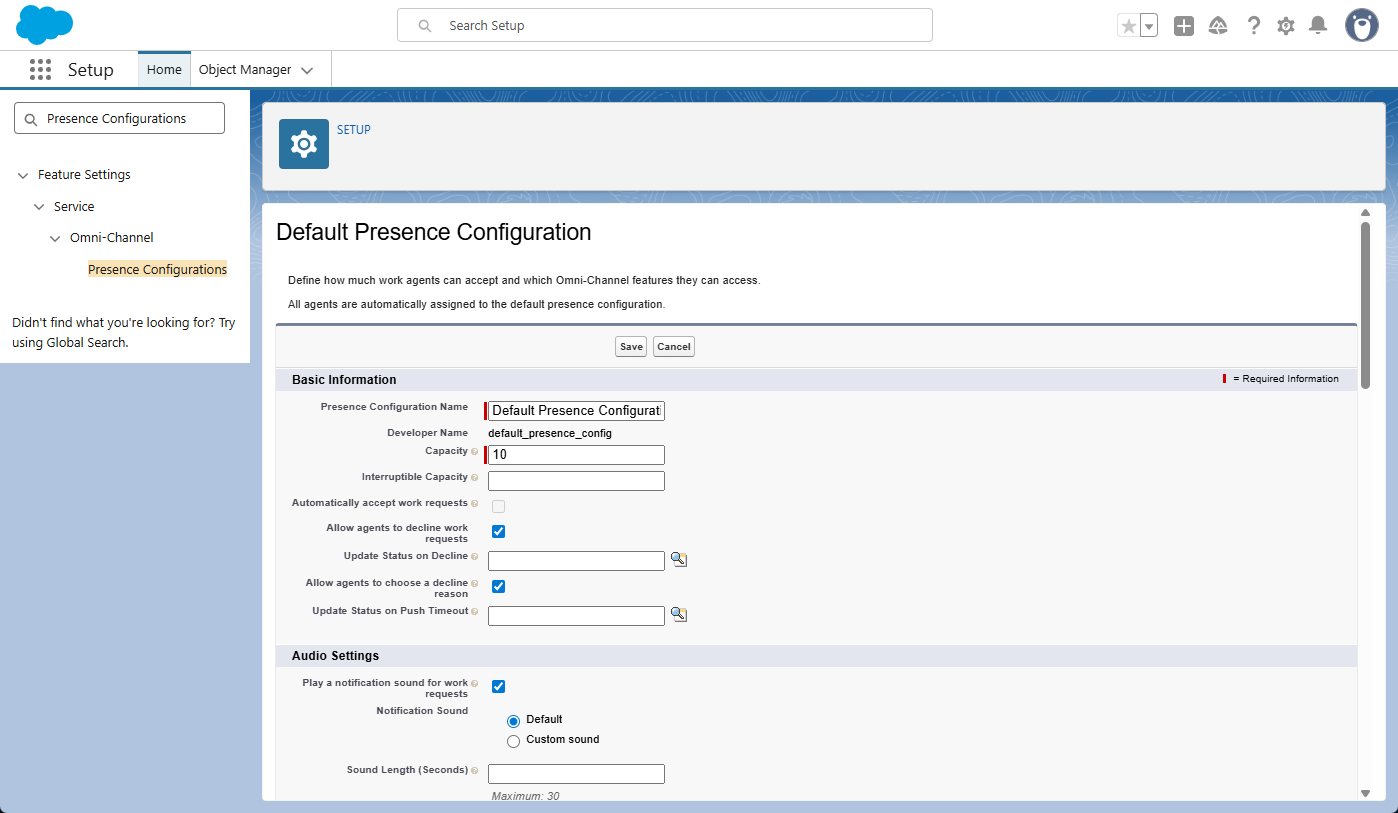 Presence Configurations act as the master settings for your agents. This is where you define an agent’s total workload capacity and determine which specific features they can access, such as the ability to decline work or see notifications.