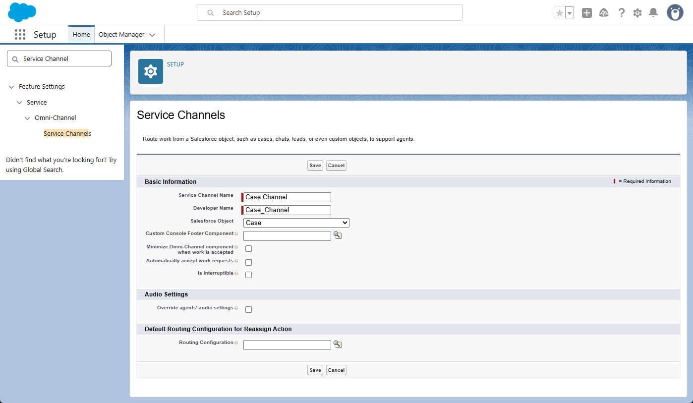 Service Channels turn Salesforce objects (like Cases or Leads) into “work items.” This tells Omni-Channel which records are eligible to be routed to your agents. Setting this up now allows you to link these channels to your agent’s “Available” status in the next step.
