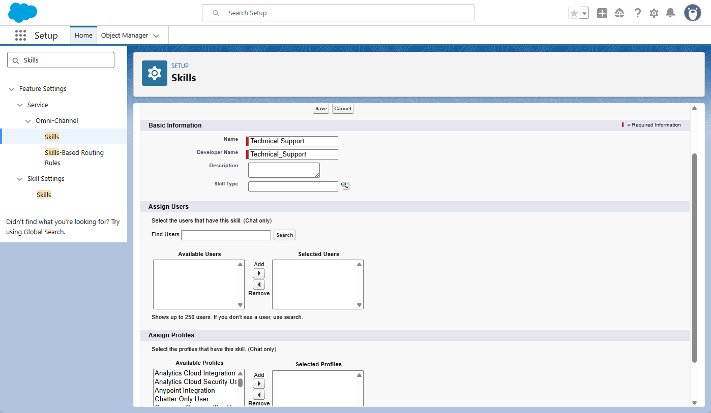 Important Note for Skills-Based Routing: If you are using skills, you must complete one final task to tell Salesforce how to match a record to a skill. Follow these steps to map your fields: