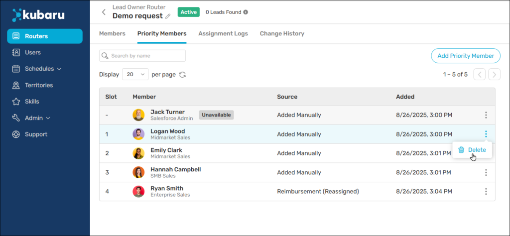 - You can also assign schedules to individual members in the Router Members section for teams spread across multiple time zones.