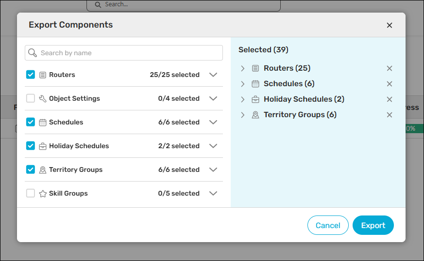 - Expanded Migrator Functionality: The migration tool now supports skills, territories, schedules, and object settings. You can also view a detailed history of imports and exports.